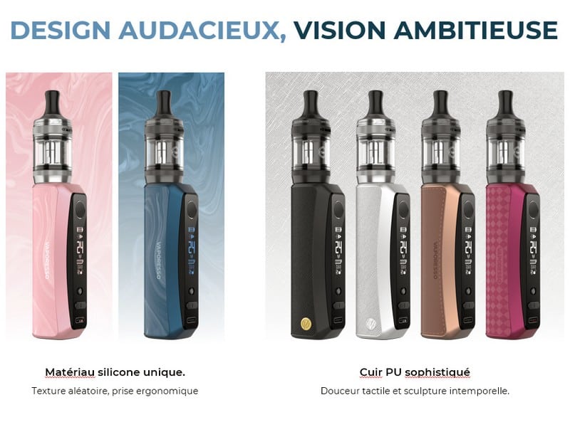 Cette nouvelle box GTX One Pro de chez Vaporesso est dotée d’un design épuré avec des finitions sobres et un revêtement en silicone doux, il offre une prise en main confortable et un rendu haut de gamme.