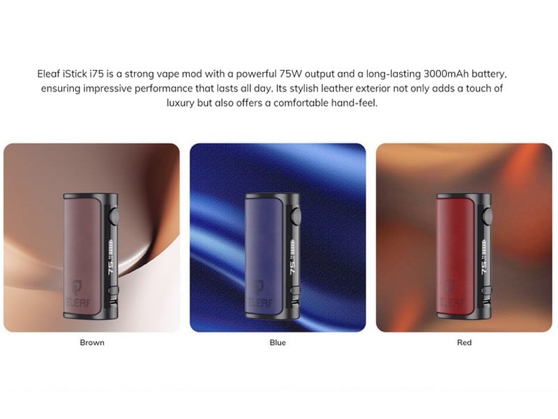L’ajout d’un revêtement en simili cuir sur le mod iStick i75 Eleaf apporte une touche d’élégance et de qualité à son design.