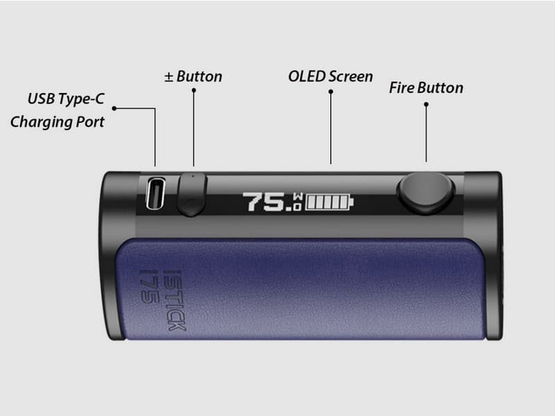 D’une puissance maximale de 75Watts la box iStick i75 permet un vapotage dynamique avec un ajustement selon vos préférences.