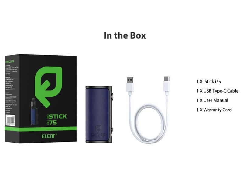 Contenu du coffret box iStick i75 3000mAh Eleaf :