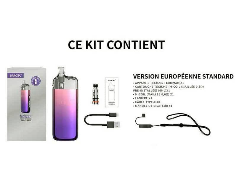 Kit Tech247 1800mAh Smok une cigarette électronique pratique, compacte, et surtout très simple d’utilisation.