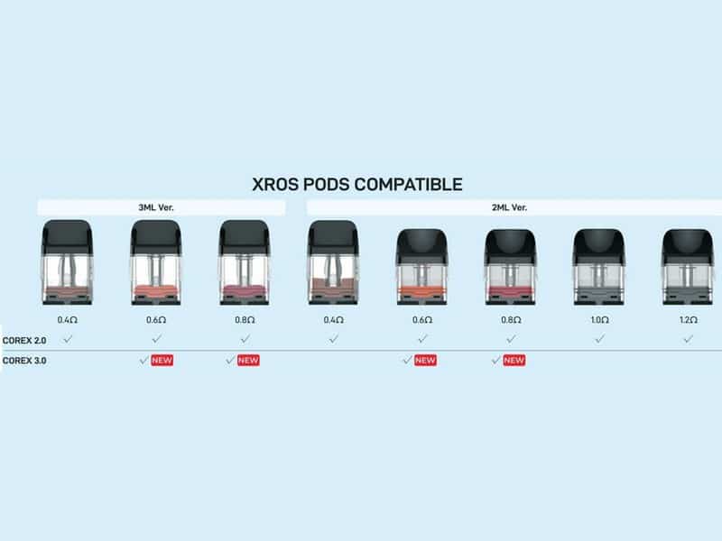 Le kit XROS 5 mini est compatible avec toutes les cartouches de la série XROS : les versions 2ml, 3ml classiques ainsi que les nouvelles Corex 3.0. Cette compatibilité vous donne un large choix pour personnaliser votre expérience selon vos préférences de vape.